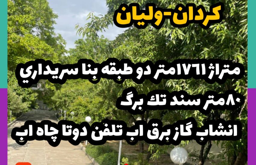 برای فروش ویژه آپارتمان, خانه خانوادگی, خانه شهری, مجموعه ی آپارتمانی, ویلای مدرن فروش ویلا در کردان-ولیان | ۱۷۶۱ زمین ۸۰ بنا | دوطبقه، سند تک برگ Alborz Province, Kordan, میدان ولایت, بلوار شهدای کردان، WRVJ+5H6, Iran مترمربع: 1761 achp 8 ماه قبل
